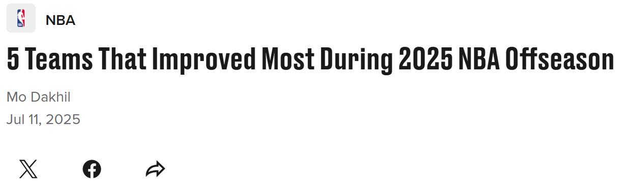 火箭队第3!经历休赛期第一波阵容大调整后,联盟大部分球队均完成补强与续约操作,为此,美媒《bleacherreport》也评选出休赛期至今进步最大球队TOP5名单,其中快船队获提名,掘金队排第一。